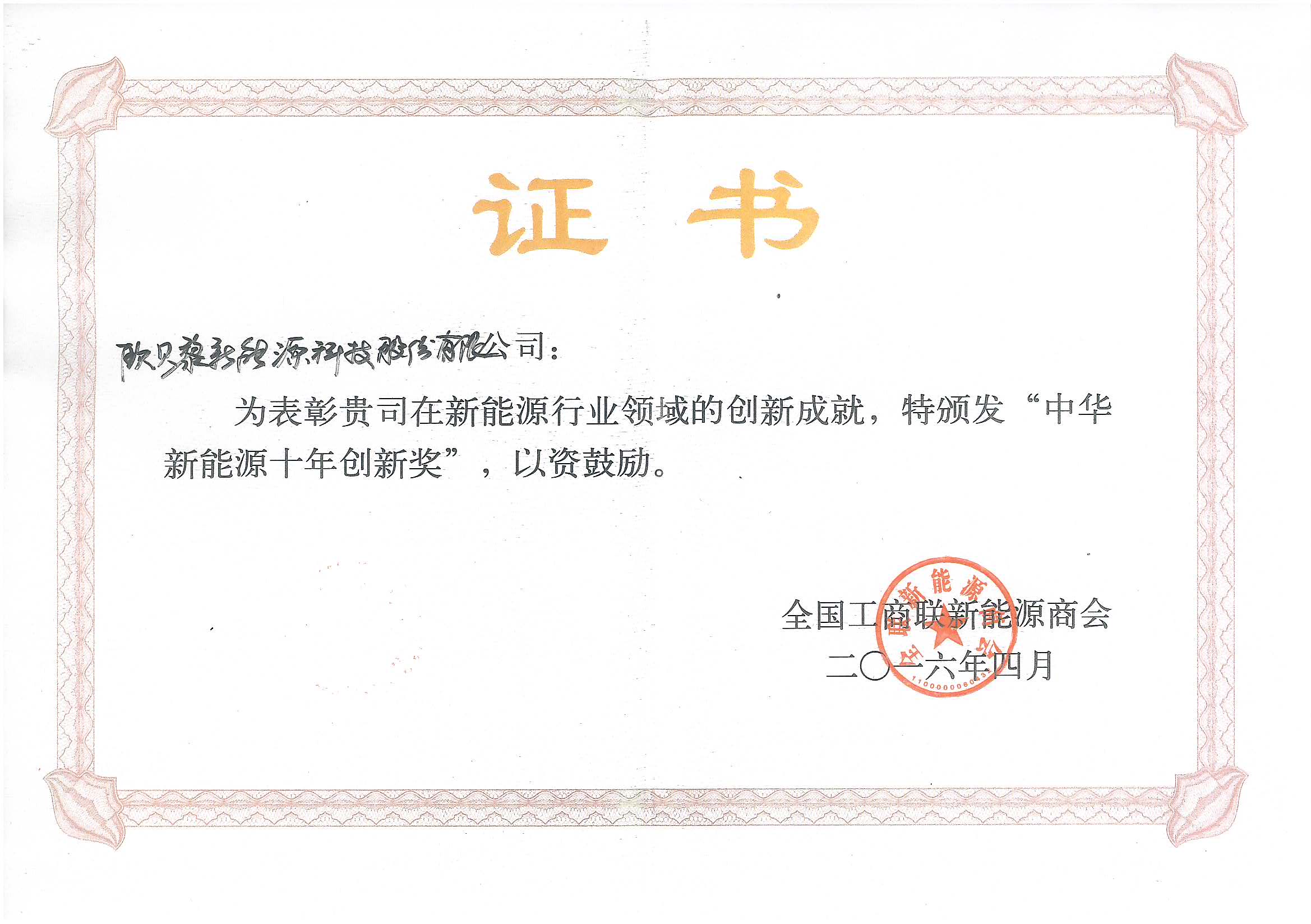 中華新能源十年創新獎
